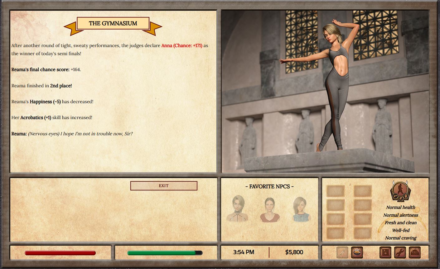 This update brings the conclusion to one of MoR's grandest quests, the Aria > Kymanto route (Slavemasters of Raana), which features roughly 160 unique renders and 100,000 words of dialogue/event texts that follow the MC's path as he becomes a highly valued ally of House Adler.